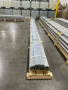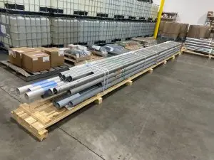 It is a mixture of stainless steel, galvanized carbon steel and duplex steel pipe packed and ready for airfreight.